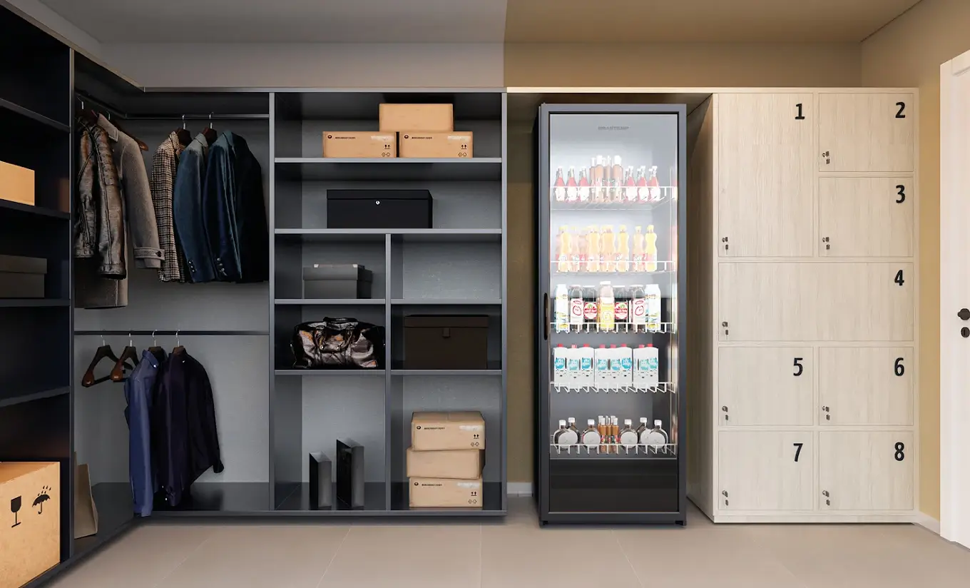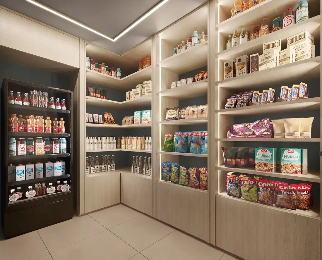 Entre os ambientes disponíveis estão: piscina adulto, piscina infantil, deck molhado, bar na piscina, solarium, espaço grill, vip space, playground, quadra de areia, praça da fogueira, quadra poliesportiva, sauna, brinquedoteca, banho pet, espaço lutas, fitness, crossfit, salão gourmet, salão de festas, coworking, sala de jogos, delivery space, mini mercado e pet place.