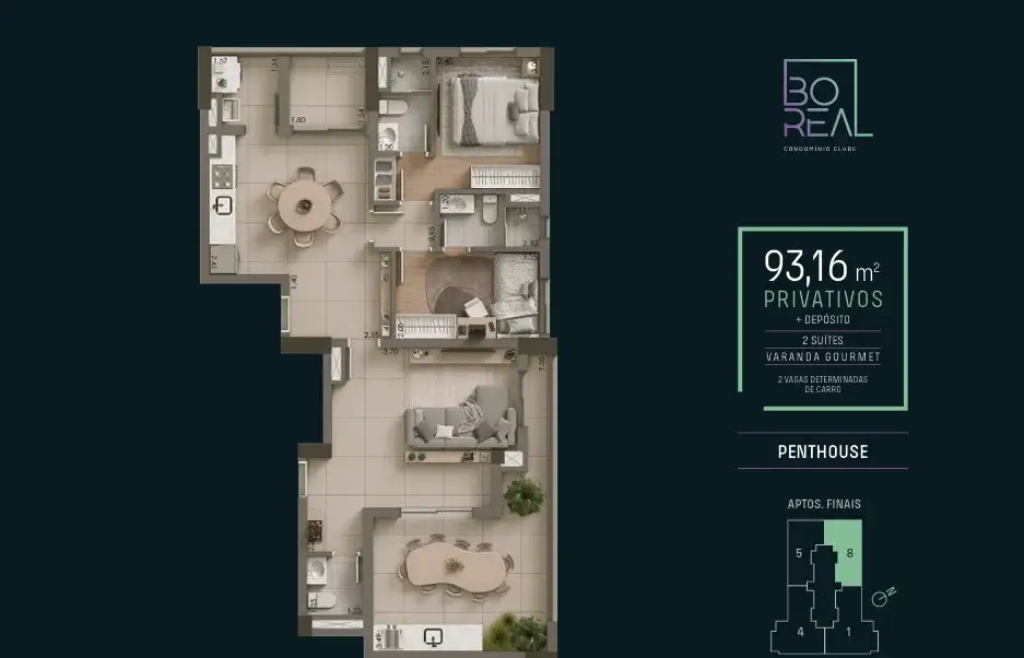 O Boreal Condomínio Clube foi projetado para unir estética contemporânea com funcionalidade. Com terrenos bem dimensionados (2.426 m²) e uma única torre, o empreendimento busca oferecer vistas privilegiadas e aproveitamento eficiente de iluminação natural em todas as unidades.